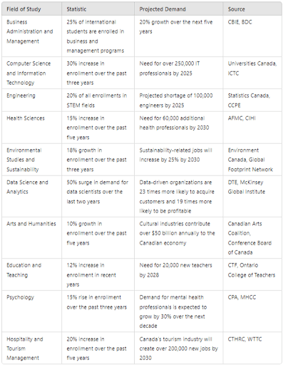- Data from Universities Canada indicates that computer science and IT programs have seen a 30% increase in enrollment over the past three years.